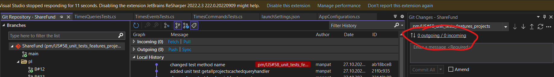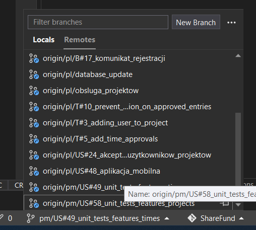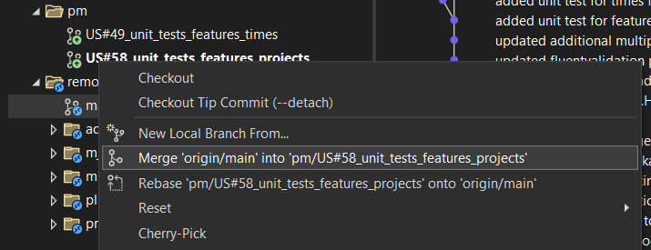 - Right click on the remote branch which there is a conflict with - the target of the pull request