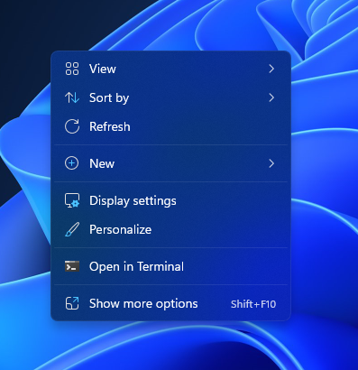 - Right click on wherever on desktop and open context menu: