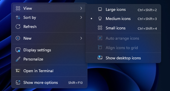 - Click View → Click Show desktop icons