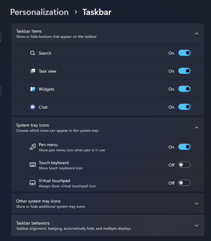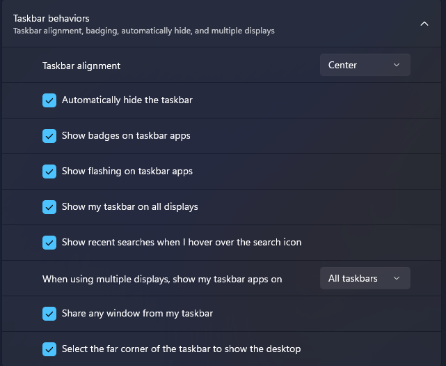 - Click on Taskbar behaviors