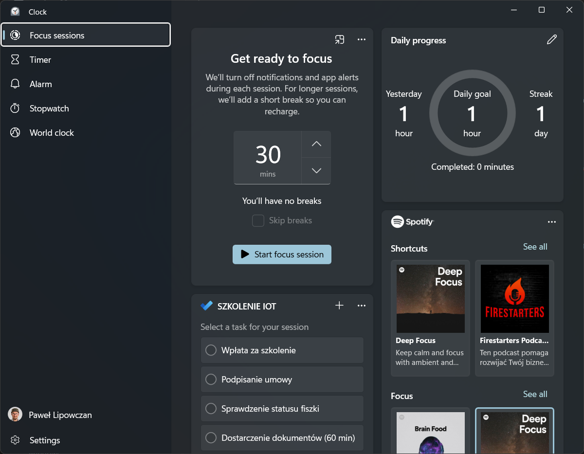 - Focus mode - Clock
