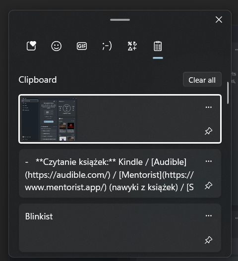 - Clipboard Manager shortcut: WIN + V